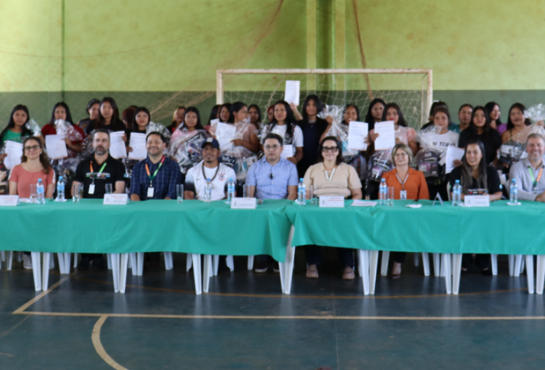 A certificação das 44 indígenas que concluíram o curso foi realizada no último dia 10, na Escola Estadual Indígena Mbo Eroy Guarani Kaiowá. As mulheres e jovens certificadas são da Aldeia Amambai e da área de retomada Guapo’y Mirim Tujuri.
